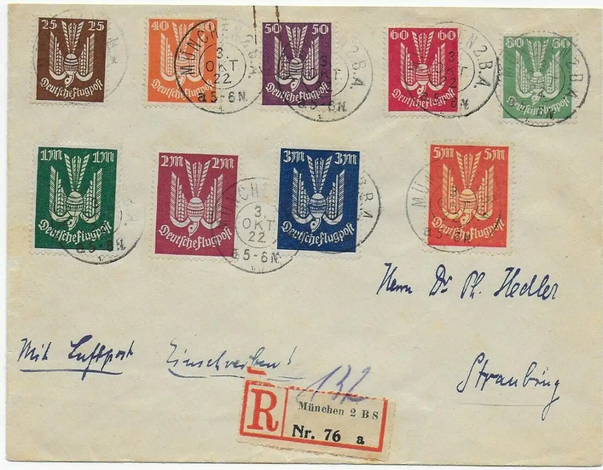 Einschreiben München 1922, Luftpost nach Straubing, Absender Lichtspielkunst