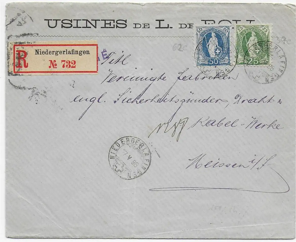 Einschreiben Niedergerlafingen nach Meissen, 1898