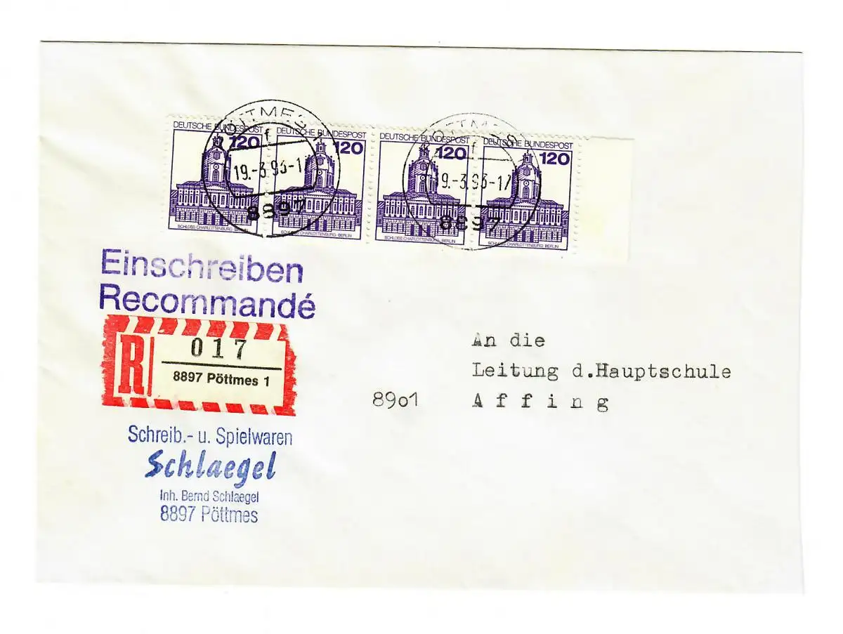 Einschreiben Pottmes nach Affing, 120 Pfg, MeF