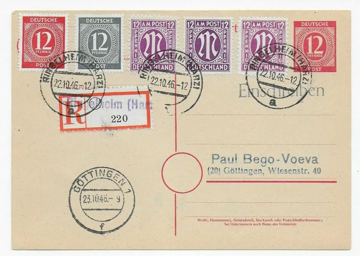 Einschreiben Ringelheim/Harz 1946 nach Göttingen. Rückseite Absenderstempel