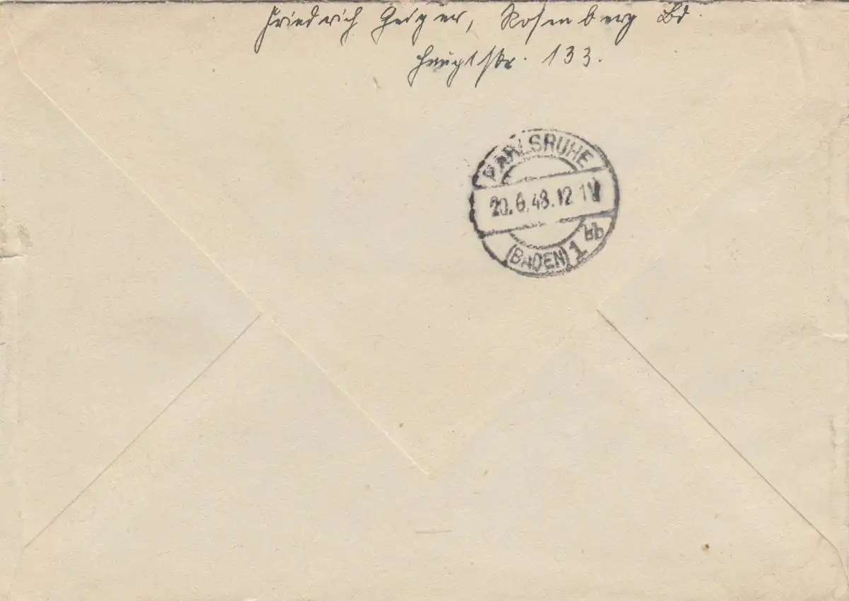 Einschreiben Rosenberg 1948 nach Karlsruhe