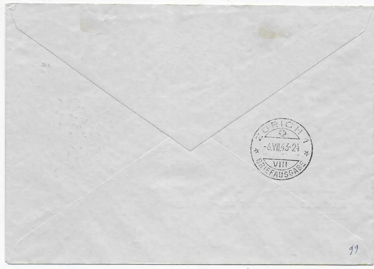 Einschreiben Schaan, 1943, MiNr. 214-217 nach Zürich