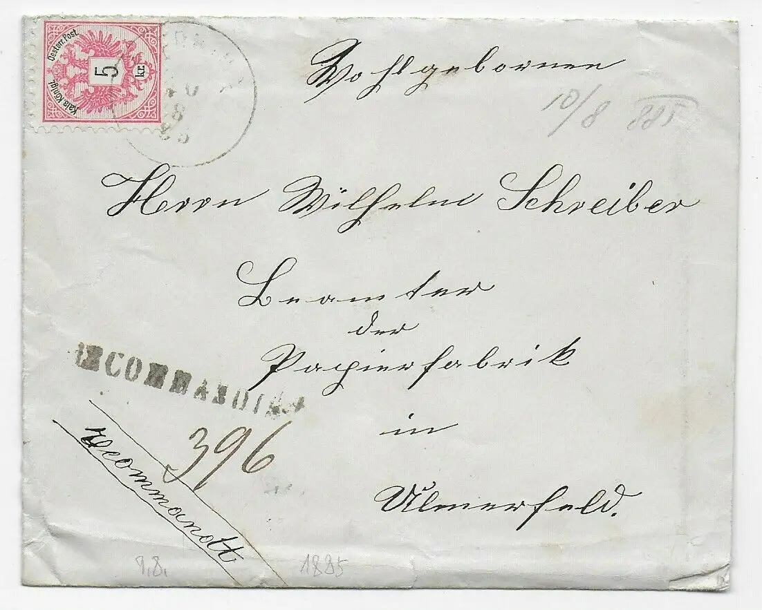 Einschreiben Sierning 1885 nach Ulmerfeld mit Briefinhalt