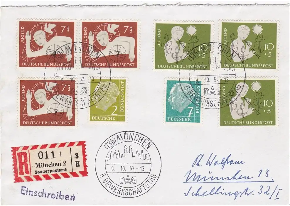 Einschreiben - Sonderstempel - Gewerkschaftstag 1957 München - Sonderpostamt