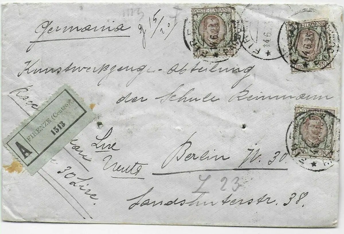 Einschreiben Wertbrief - Florenz nach Berlin, 1923