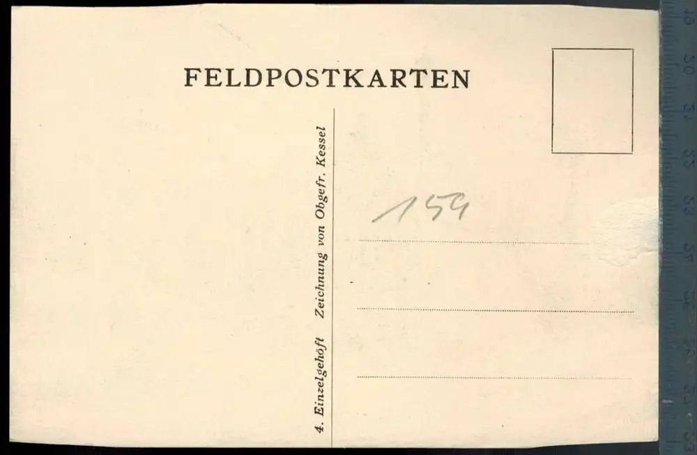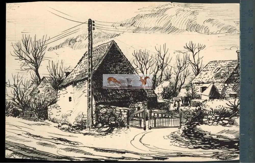 Einzelgehöft, Zeichnung von Obgefr. Kessel -- Verlag: ----------------, POSTKARTE, Erhaltung: I-II, unbenutzt, Karte wird in Klarsichthülle verschickt.