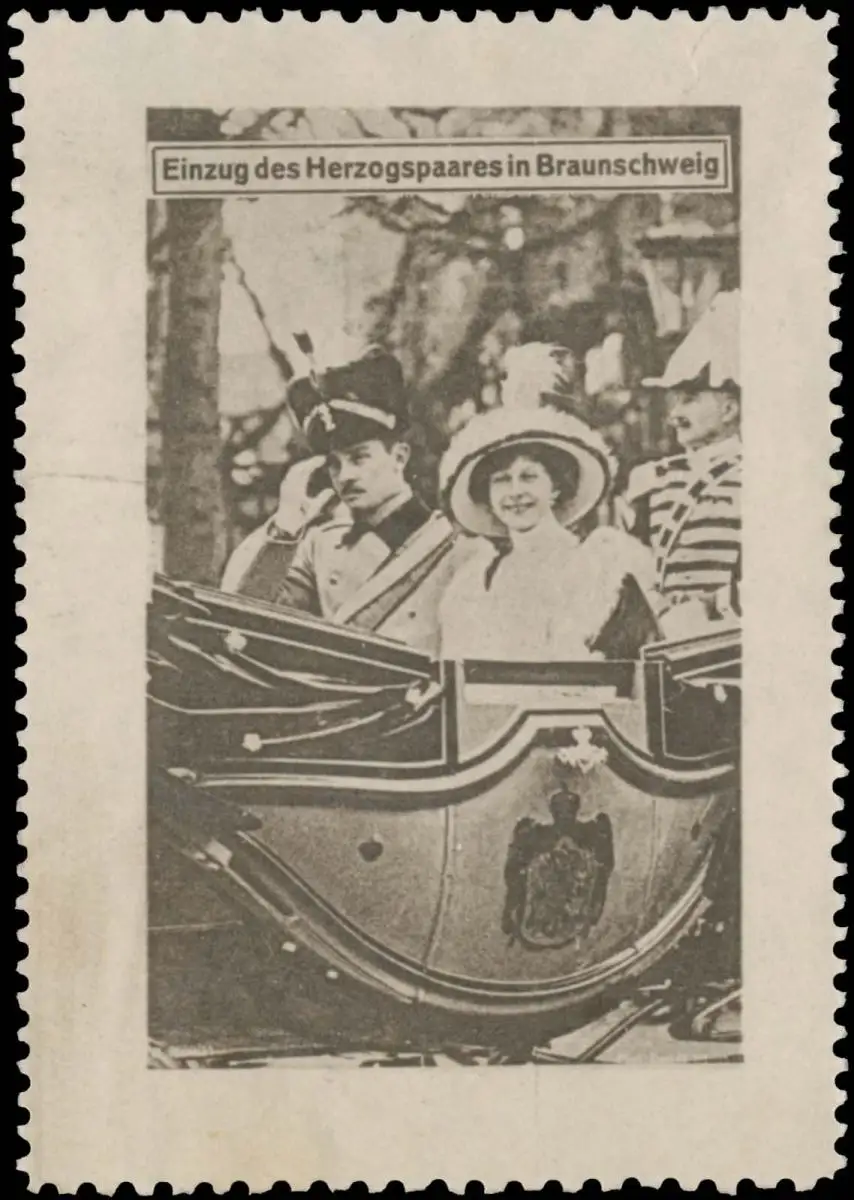 offene Kutsche, Größe/Zustand: 5x6 , guter Zustand, Original alte Reklamemarke die seinerzeit für die Werbung benutzt wurde