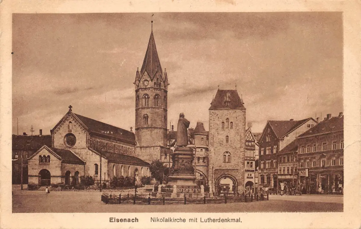 Eisenach Nicolaikirche mit Lutherdenkmal gl1918 181.590