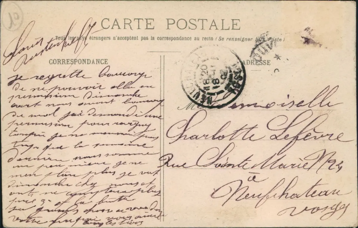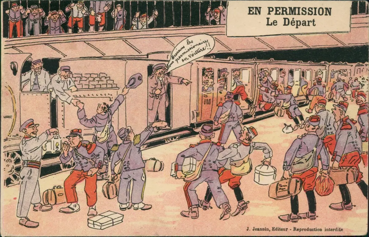 Eisenbahn Zug Lokomotive Scherzkarte France Le Depart EN PERMISSION 1908