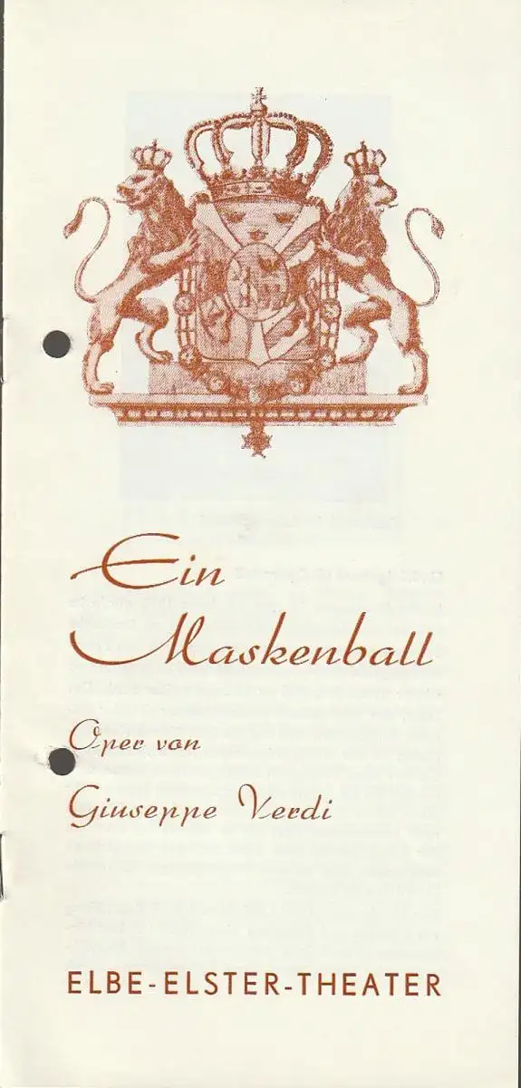Elbe-Elster-Theater Wittenberg, Helmut Bläss, Gerd Stendel: Programmheft Giuseppe Verdi EIN MASKENBALL Premiere 28. September 1985 Spielzeit 1985 / 86 Heft 3.