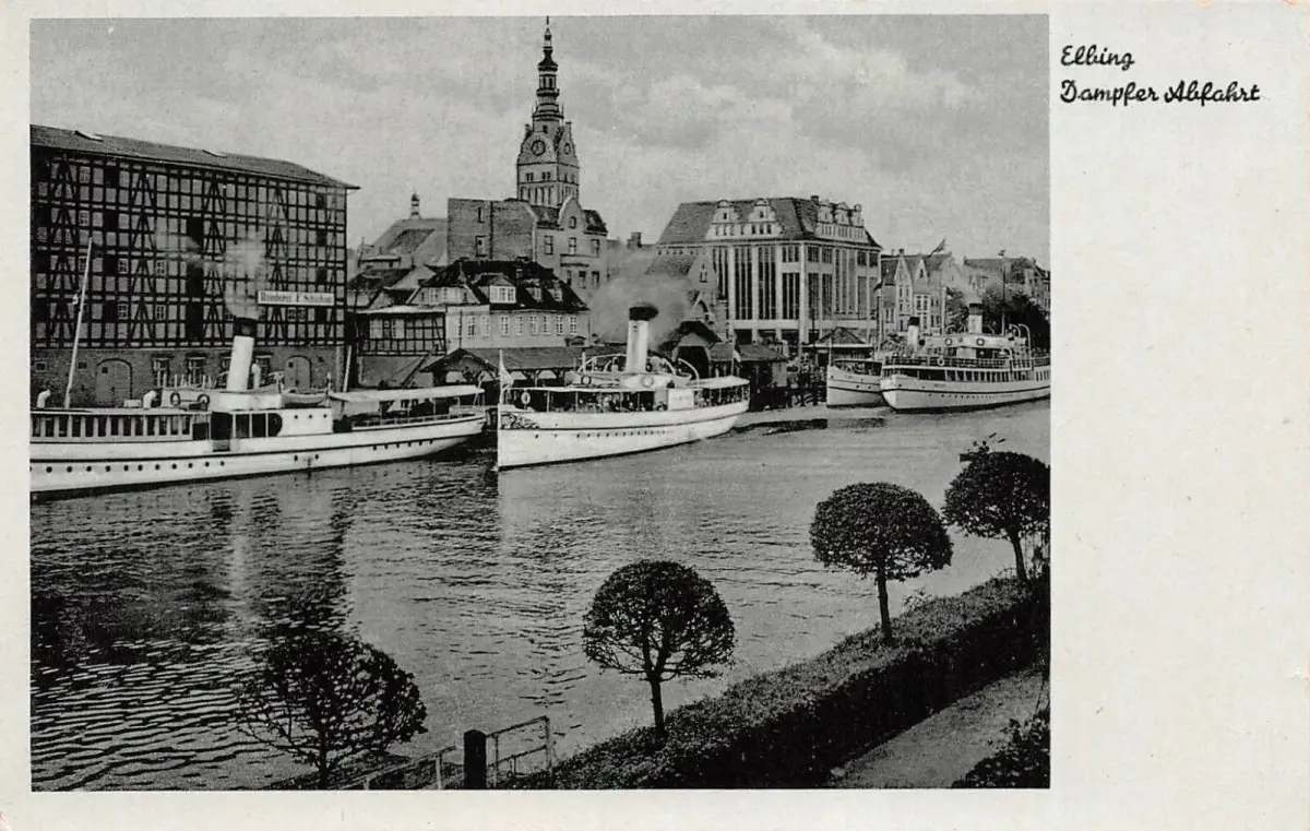 Elbing Dampfer Abfahrt Feldpostkarte AK