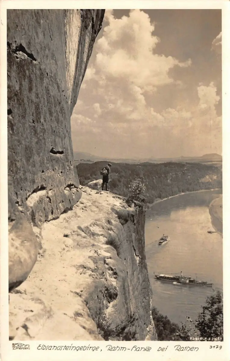 Elbsandsteingebirge Rahm-Hanke bei Rathen Dampfer Postkarte AK W. Hahn 3179
