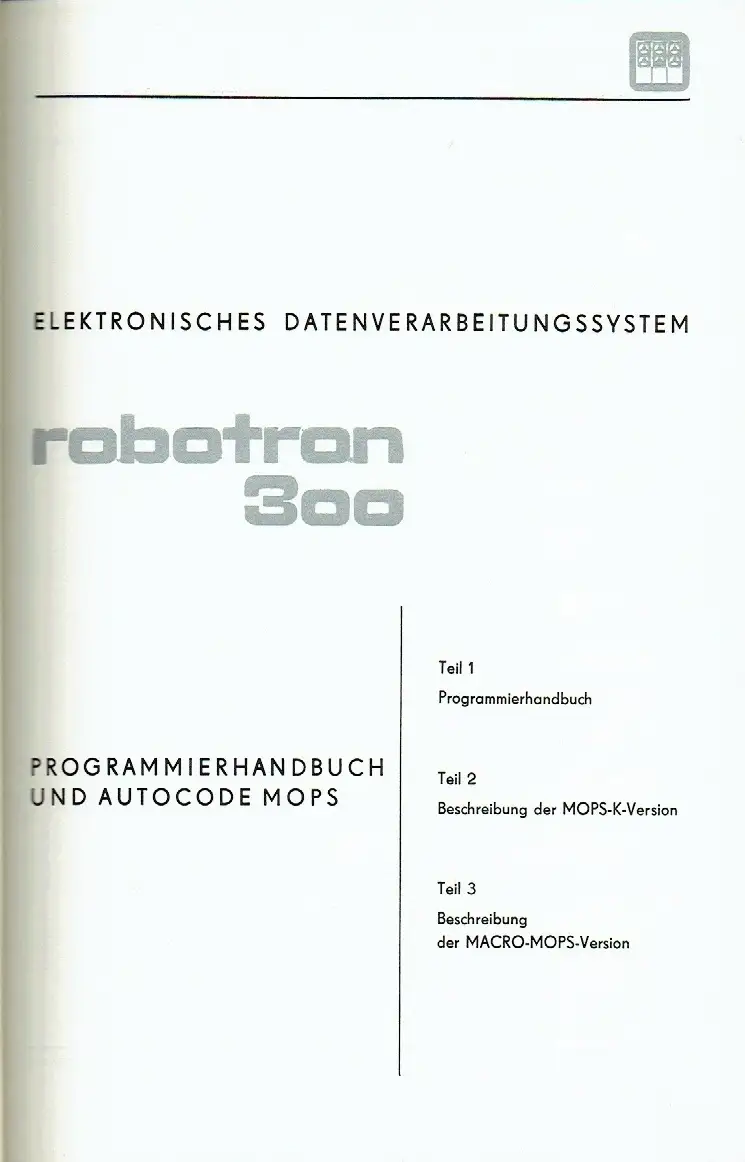 Elektronisches Datenverarbeitungssystem Robotron 300 Programmierhandbuch und Autocode MOPS.