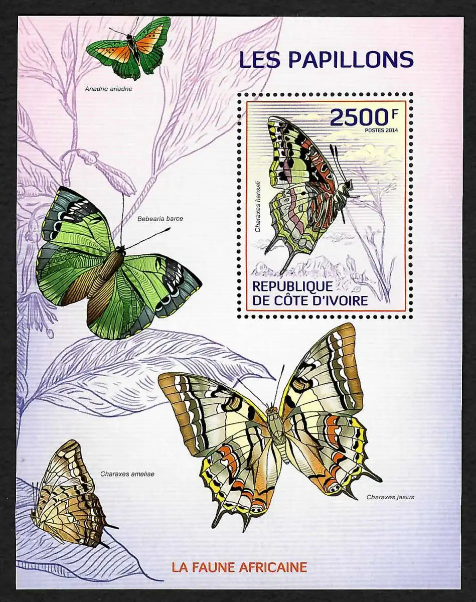 Elfenbeinküste 2014: Les Papillons, La Faune Africaine, postfrisch