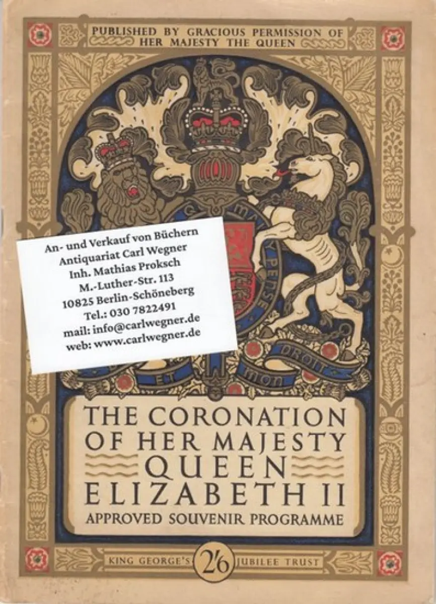 from the contents: John Masefield - lines on the coronation of our gracious sovereign / Arthur Bryant: The Queens majesty / The coronation procession / George Bellew: the coronation ceremony / a genealogical table, showing the descent of the crown.