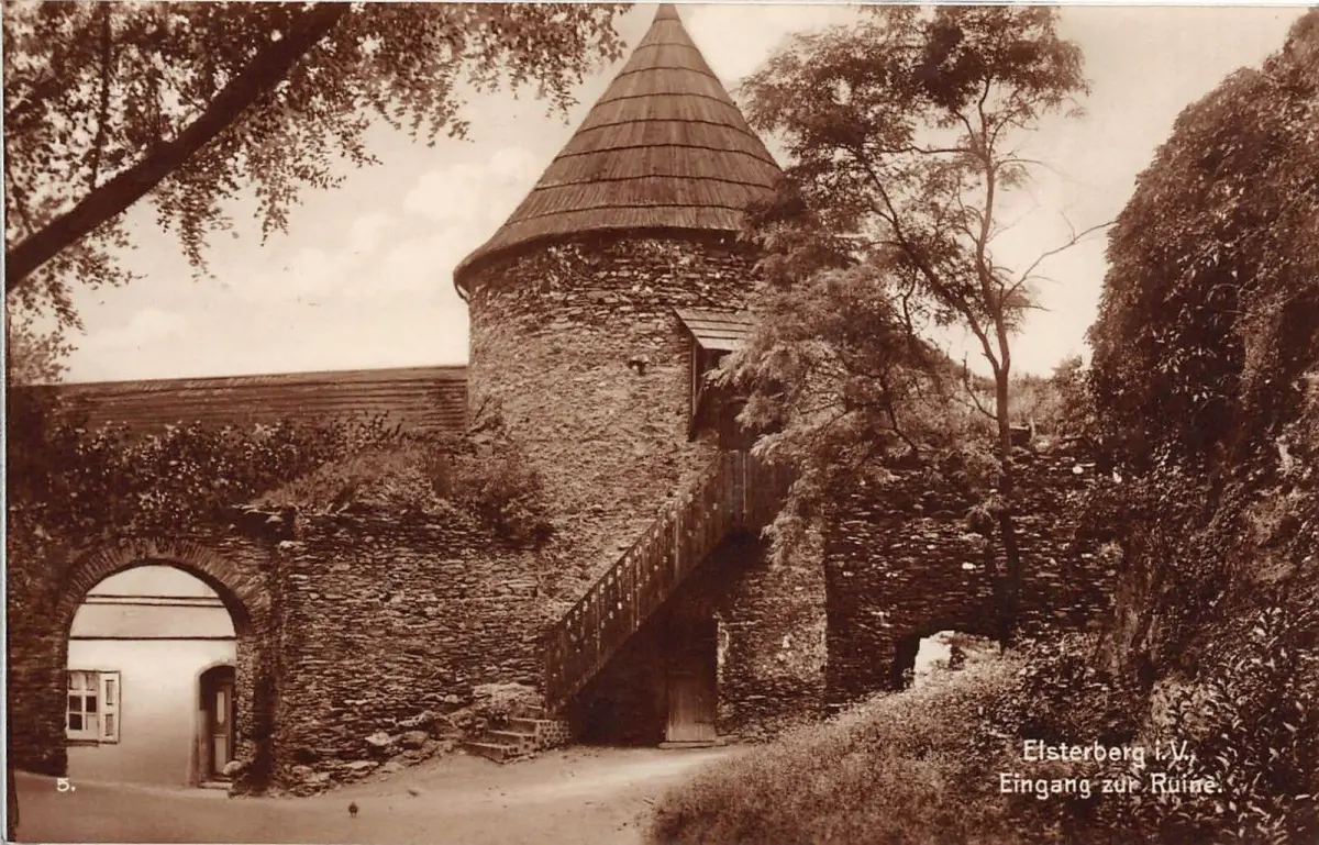 Elsterberg i. V. Eingang zur Ruine Trinks-Postkarte 1928