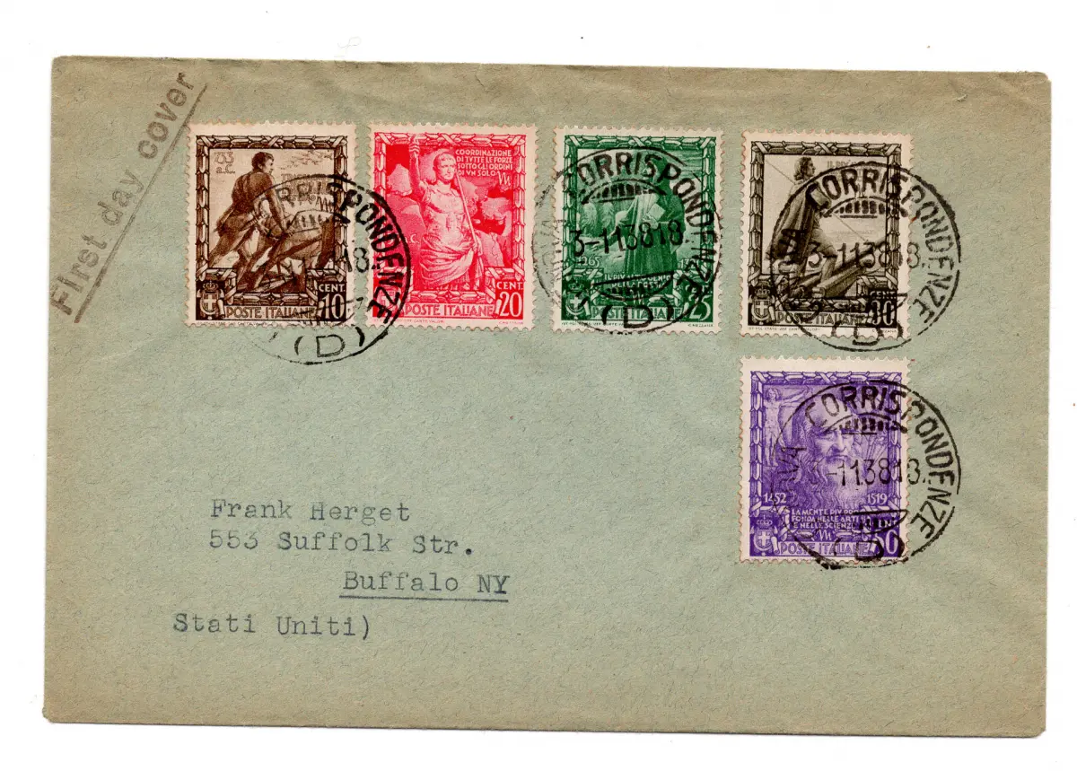 Kaiserreich fünf Werte auf Umschlag - Kaiserreich Nr. 439/443 fünf Werte auf Umschlag von Genua nach New York (ohne Ann. Ankunft) am 3.11.38 - Ungewöhnlich fünf verschiedene Werte Nr. 146/20