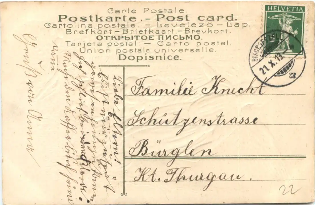 Danke. Alles Bestens. Können Sie mir allenfalls mitteilen, aus welchem Jahr die Postkarte stammt? Besten Dank.