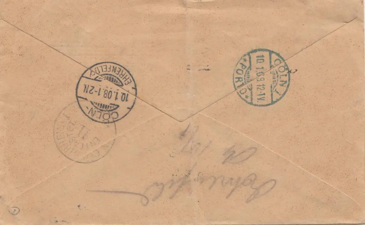 England: 1908: Hull nach Ehrenfeld/Köln - Taxe