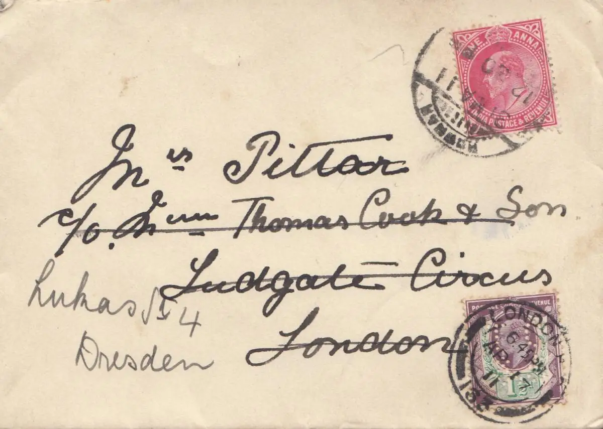 sehr schöner und seltener Bahnpostbeleg aus Britisch Indien F4 OUT / SET N°1 mit Mischfrankatur King Edward / King George 1912 nach nach Frankfurt am Main versandt. Ich bin sehr zufrieden, vielen Dank!