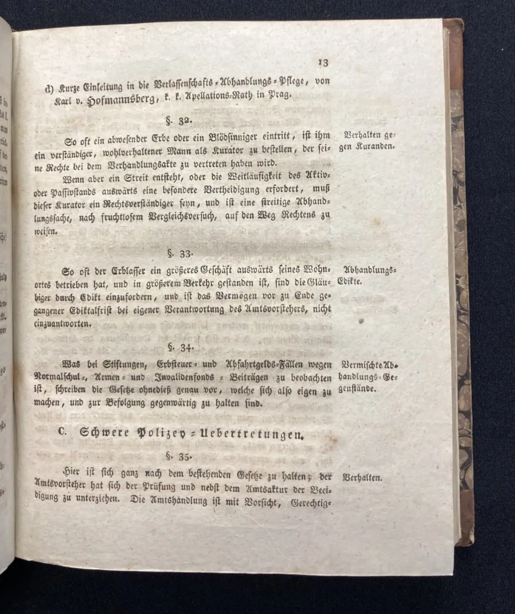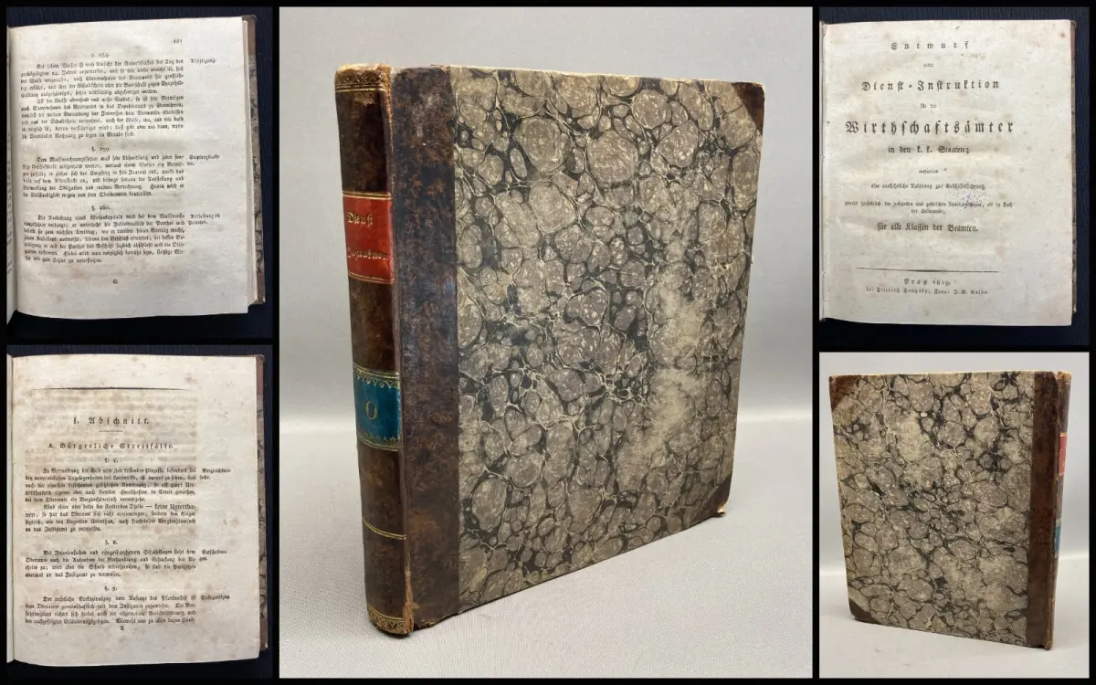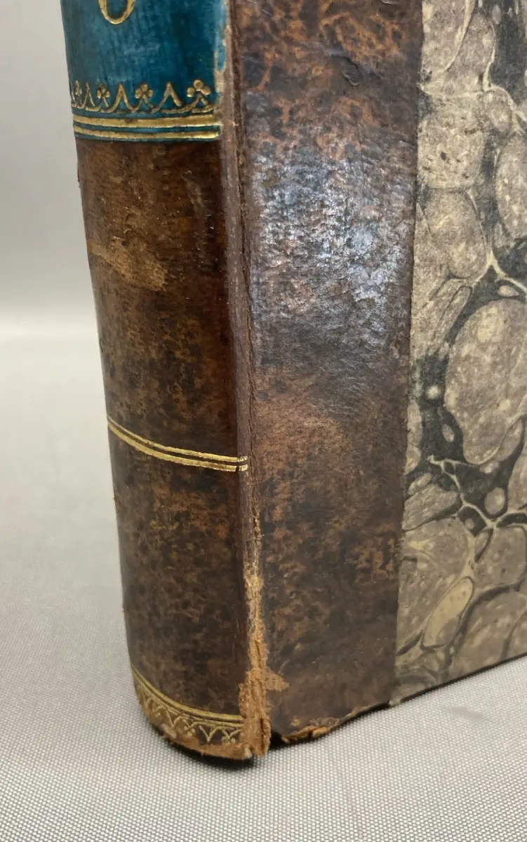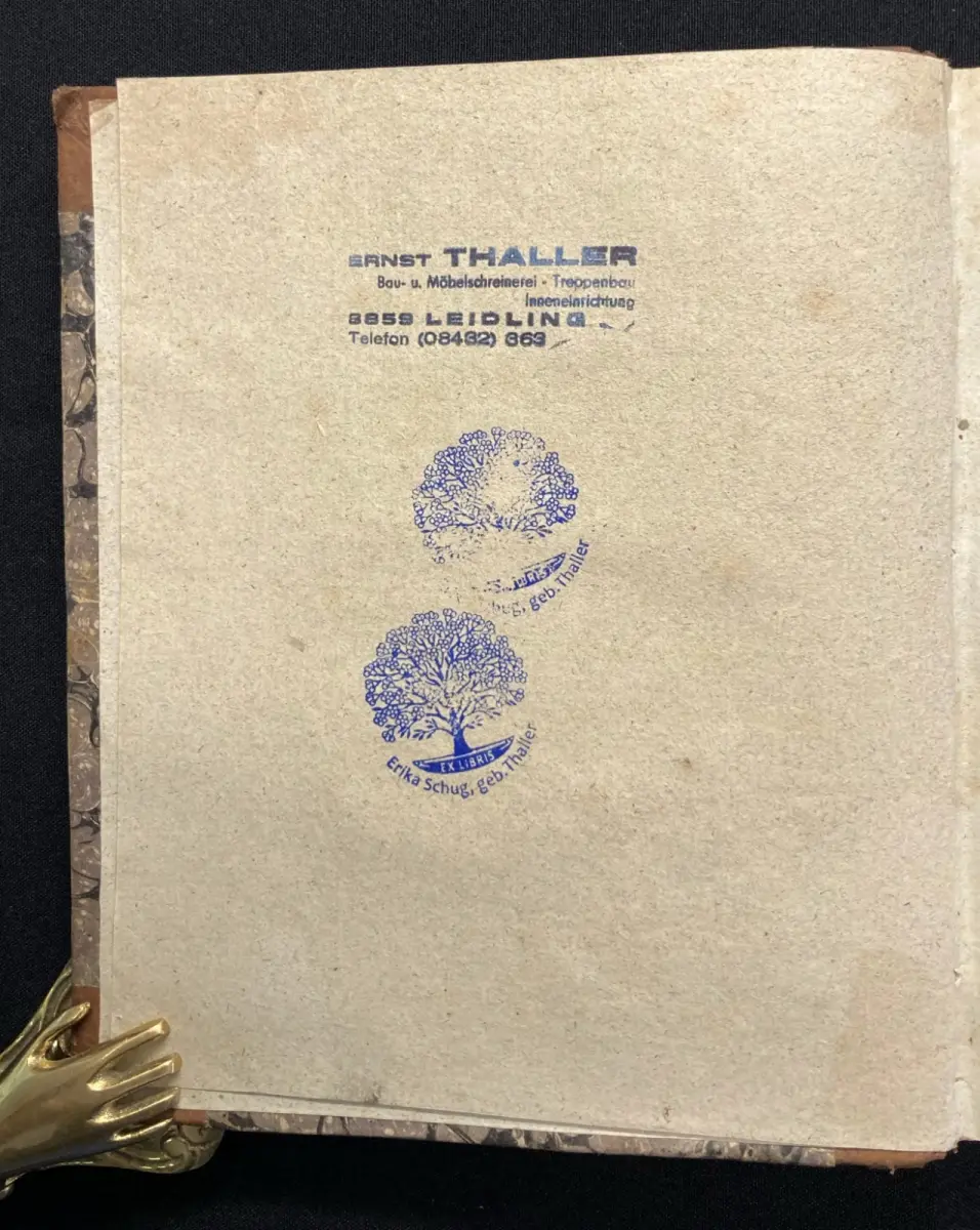 Einband leicht beschabt und bestoßen, an den Falzen ist alles etwas eingedrückt. Schmutzbll. und Titel verso gestempelt. Papier gering gebräunt und vermehrt braunfleckig.