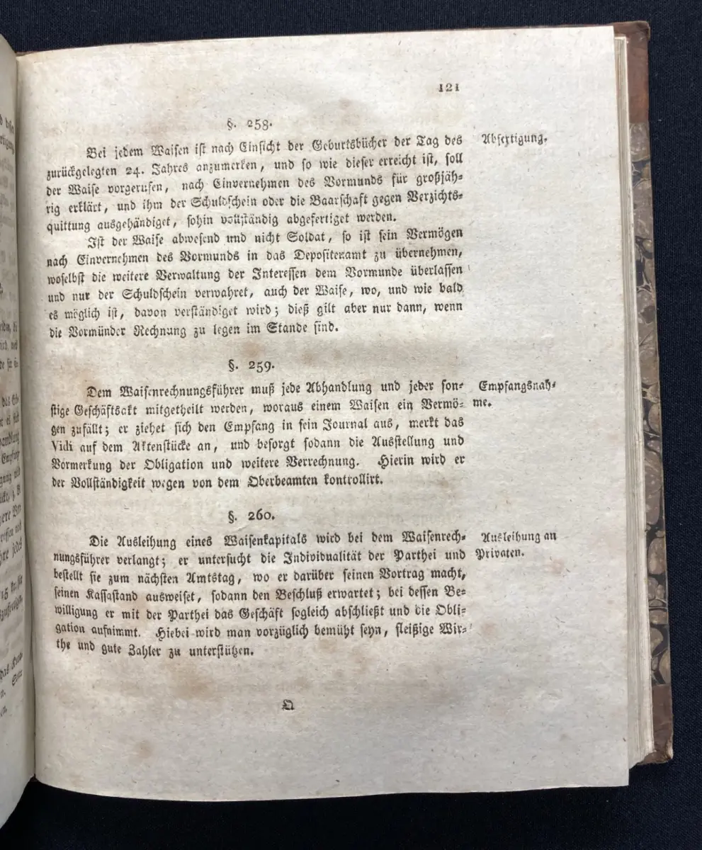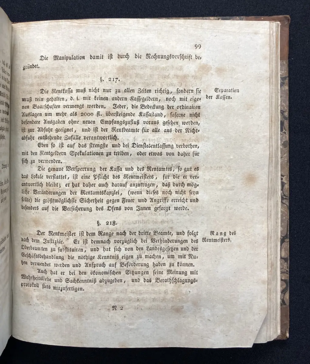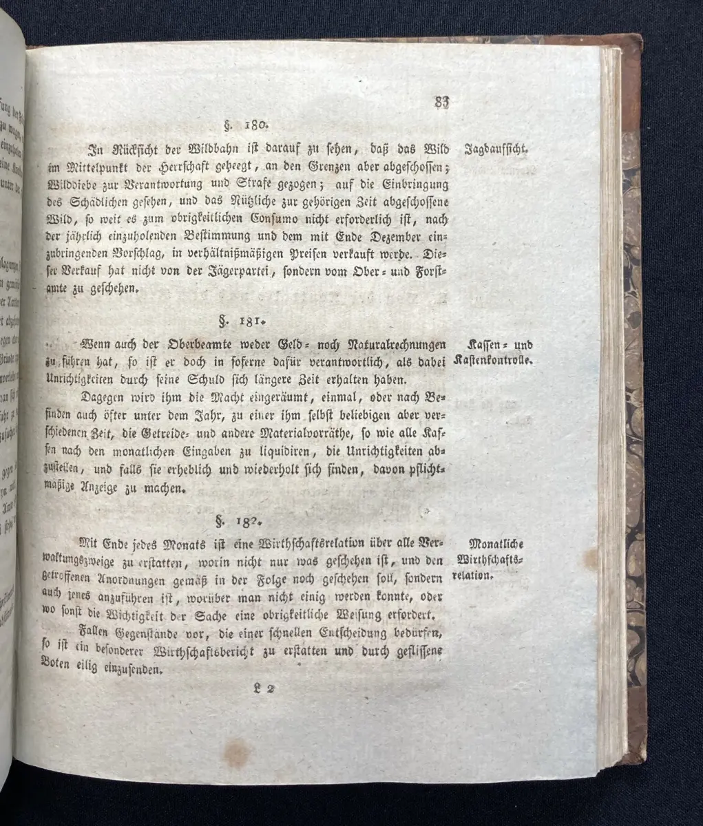 Einband leicht beschabt und bestoßen, an den Falzen ist alles etwas eingedrückt. Schmutzbll. und Titel verso gestempelt. Papier gering gebräunt und vermehrt braunfleckig.