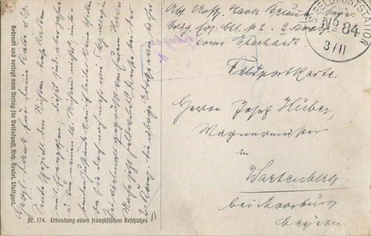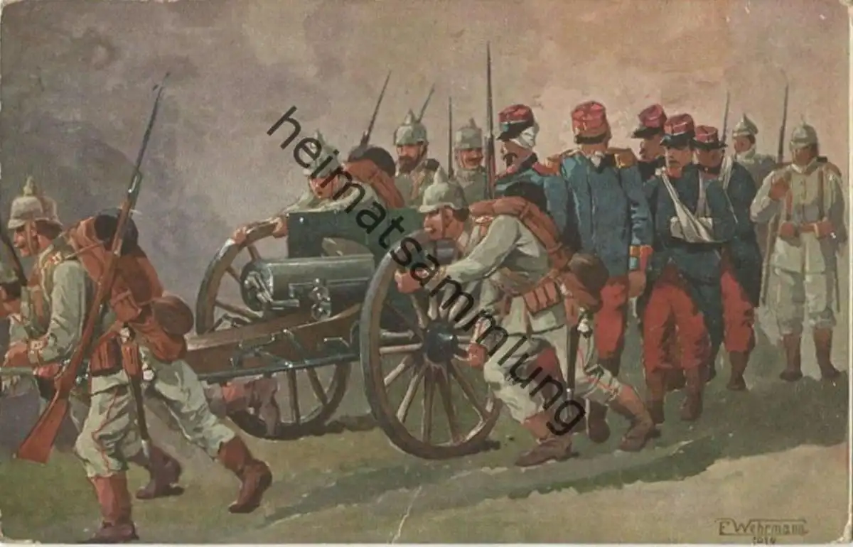 Erbeutung eines französischen Geschützes - signiert E. Wehrmann 1914 - Verlag Rich. Keutel Stuttgart - Feldpost gel.