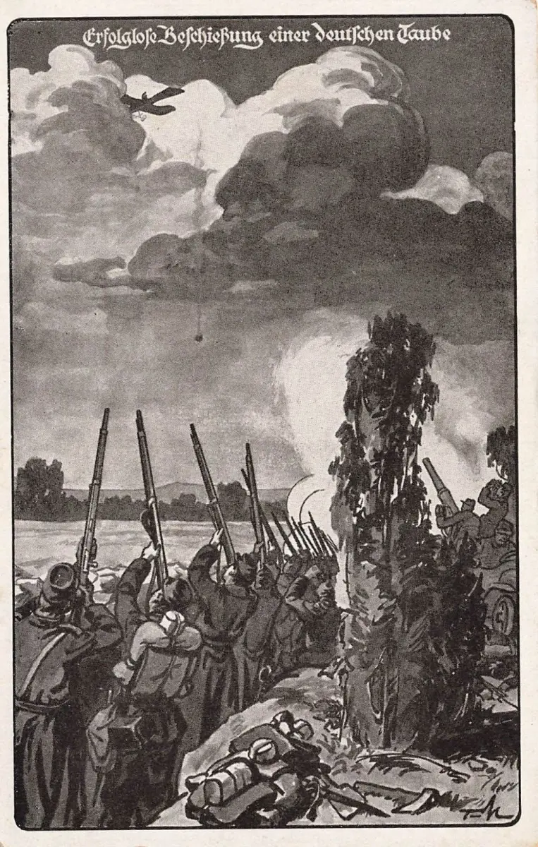 Erfolglose Beschießung einer deutschen Taube Postkarte AK