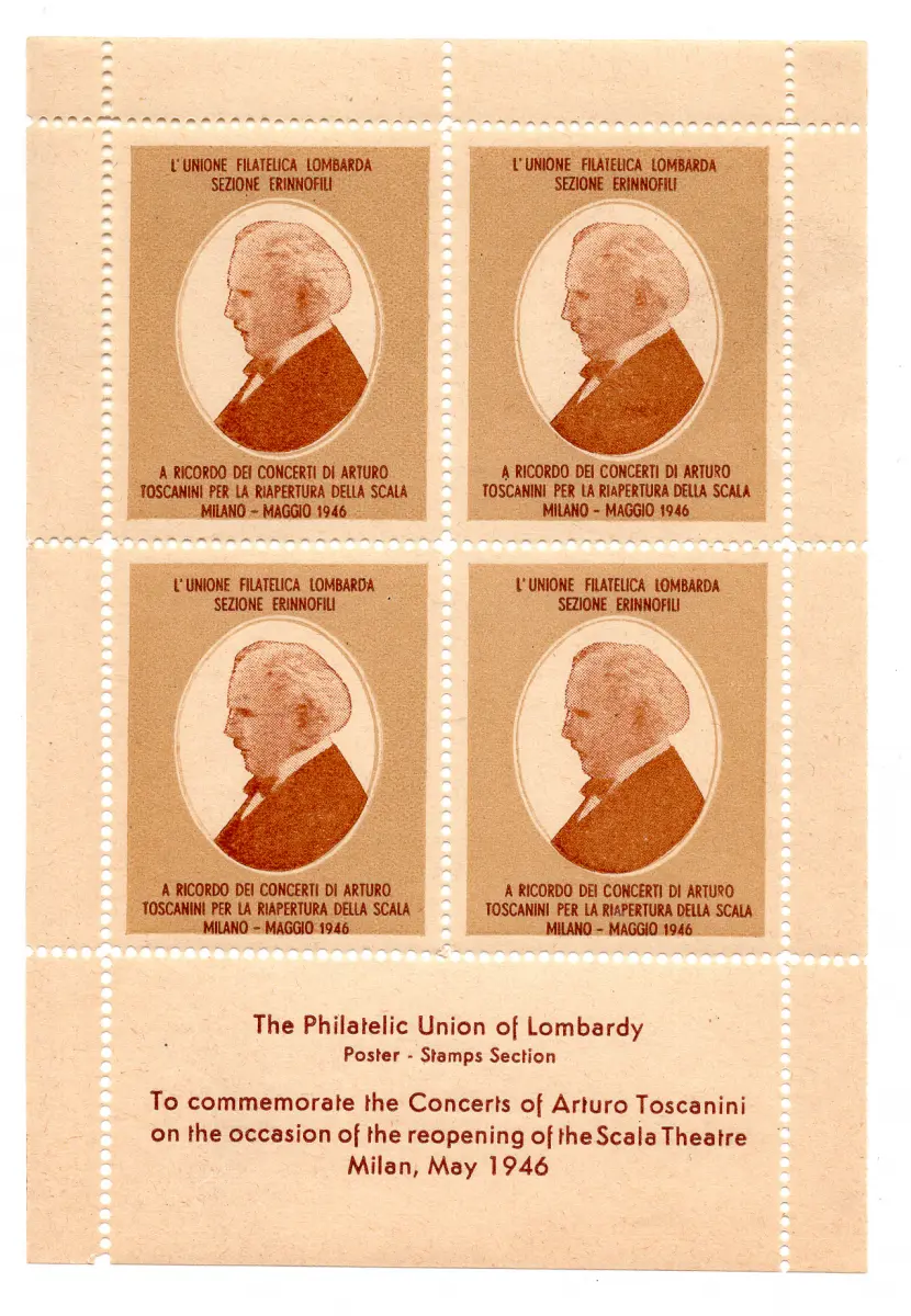 Erinnofilo Blatt Wiedereröffnung der Mailänder Scala 1946 Toscanini - Kuratiert von der Union Philatelica Lombarda - neu - Cod. 1651/WEB