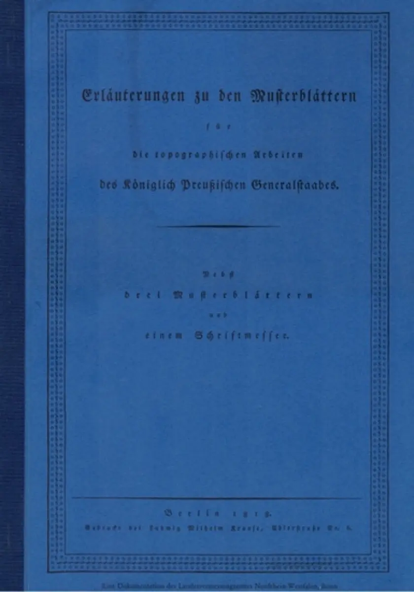 Erläuterungen zu den Musterblättern für die topographischen Arbeiten des Königlich Preußischen Generalstaabes. Nebst drei musterblättern und einem Schriftmesser. [Reprographischer Nachdruck der Ausgabe Berlin, Ludwig Wilhelm Krause, 1818] Bonn, Landesver
