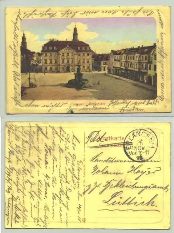 Artikelbeschreibung u. Zustand : Siehe Scan. Weitere Infos : Ansichtskarte. Erlangen - Abb. im Praegedruckrahmen. PLZ-Bereich pauschal 91052. Postalisch gelaufen 1915