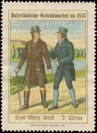 J. Görres, Vaterländische Gedenkmarken an 1813, Befreiungskriege, Völkerschlacht, Größe/Zustand: 6x4 , guter Zustand, Original alte Reklamemarke die seinerzeit für die Werbung benutzt wurde