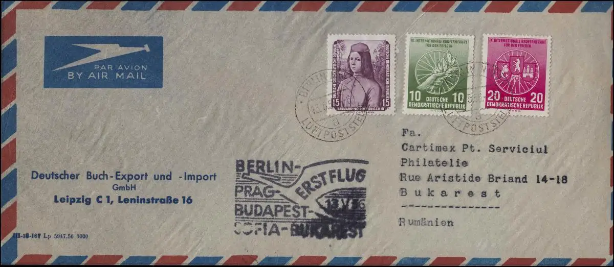 Eröffnungsflug Lufthansa Luftpost Air Mail Berlin 13.5.1956 / Bukarest 16.5.56