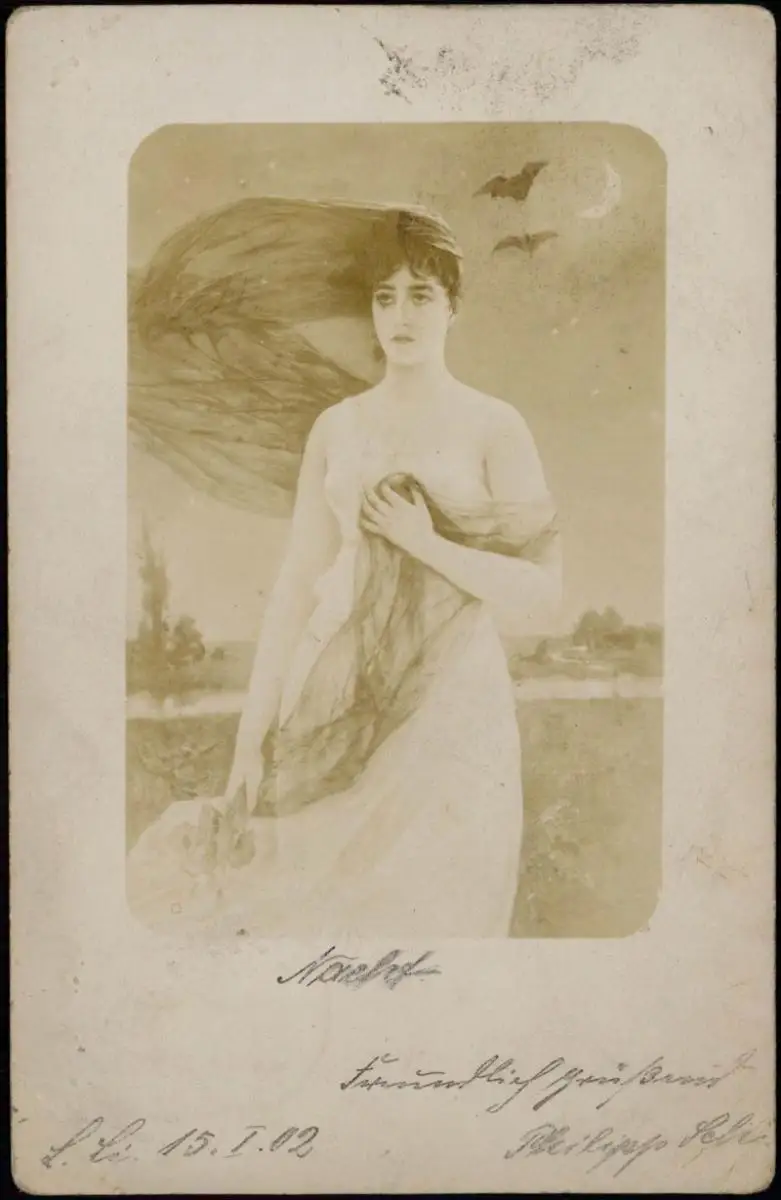 Erotik leicht bekleidete Frau bei Mondschein 1902 gel Stempel Leipzig Lindenau