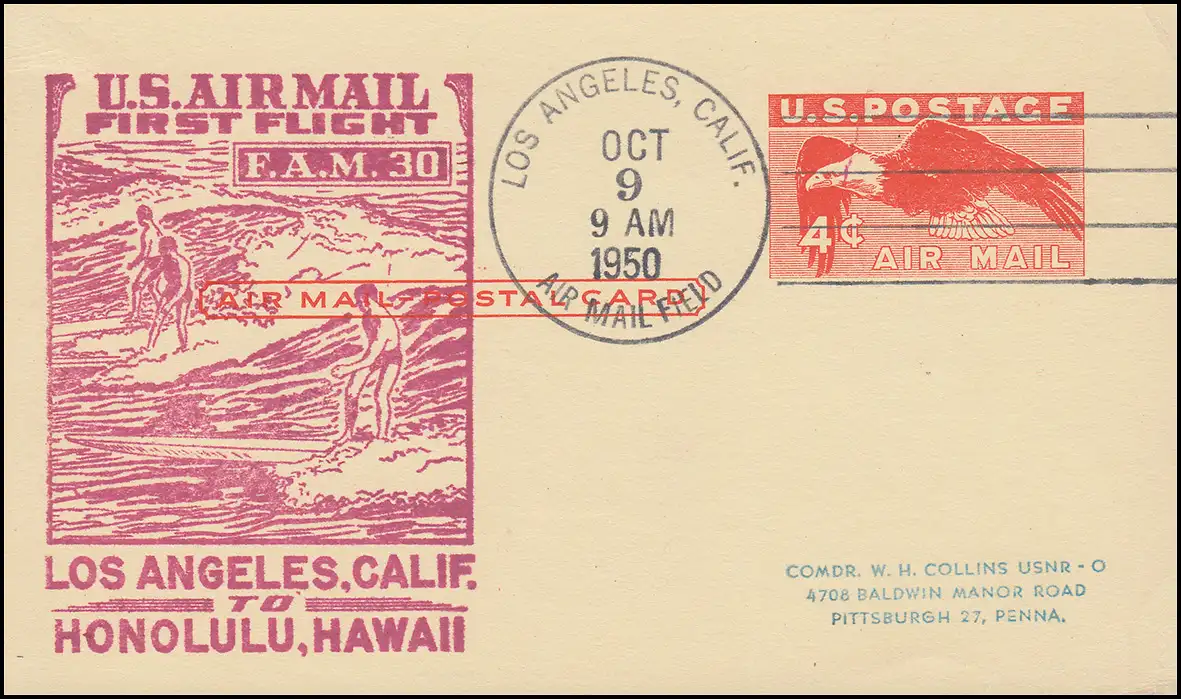 Erstflug FIRST FLIGHT F.A.M. 30 ab Los Angeles 9.10.1950 nach Honolulu 9.10.