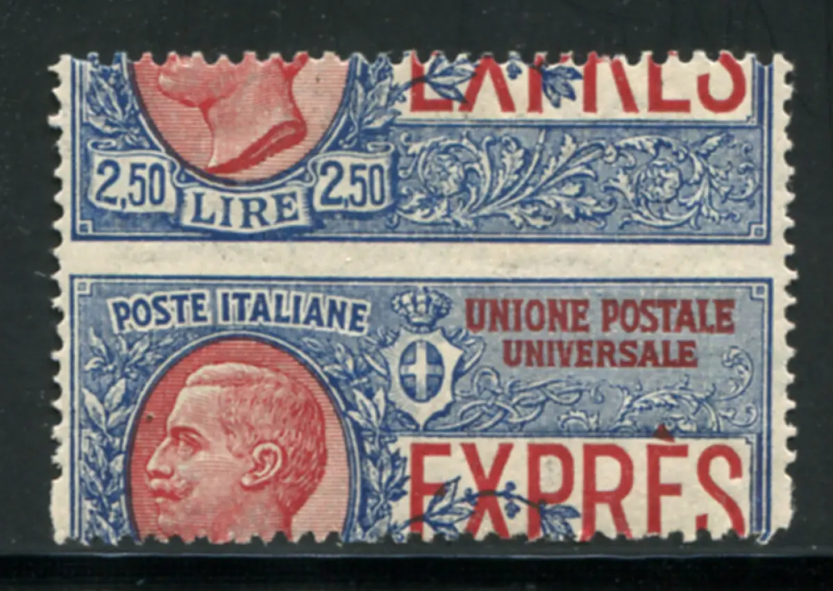 Espresso Lire 2,50 mit Kammsprung Vollgummi - Espresso Lire 2,50 Nr. 14 mit stark verschobener Verzahnung Kammsprung - Die Briefmarke hat höheres Format - Ungewöhnlicher Code 160/8