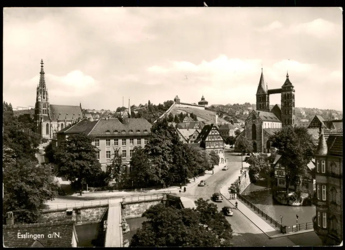 Esslingen Panorama-Ansicht, Neckar Partie Stadt Teilansicht 1958