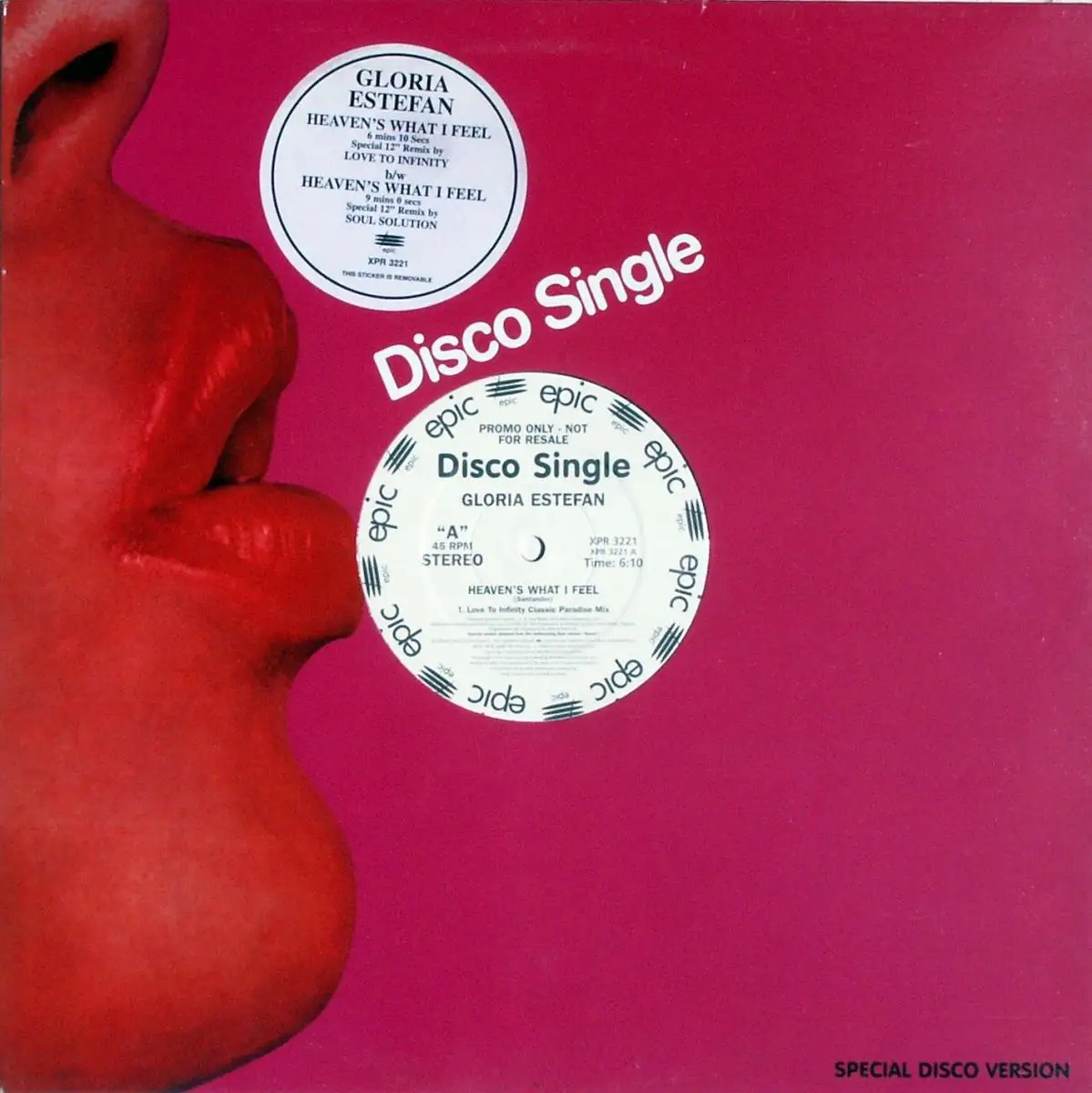 12" Maxi Gloria Estefan - Heaven's What I Feel, Promo, Einheitscover der Plattenfirma mit Info-Aufkleber, Zustand Platte M- Hülle M-; Made in United Kingdom 1998 Epic XPR 3221, Tracks Love To Infinity Classic Paradise Mix 6:10, Soul Solution Vocal Mix 9:00