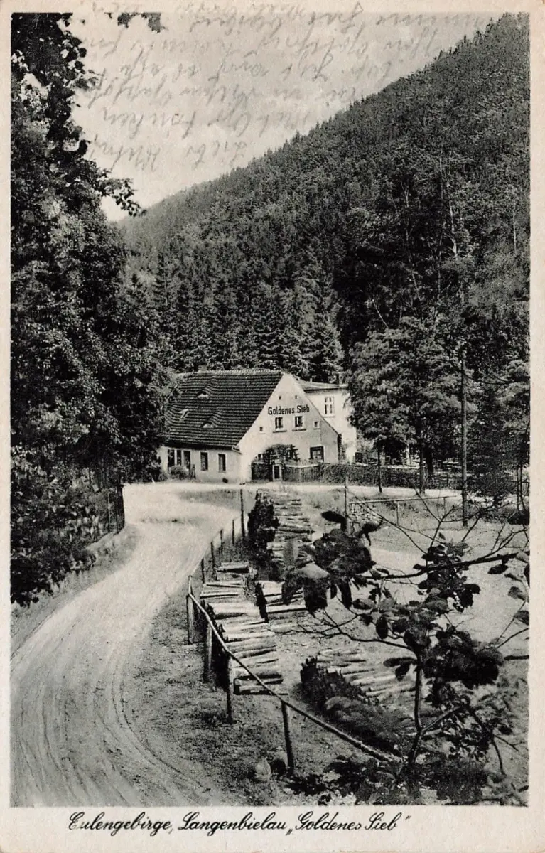 Eulengebirge Langenbielau (Bielawa) "Goldenes Sieb" Postkarte AK