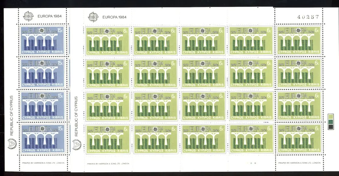 Europaunion 1984 Zypern 611-612 als Bogen-Satz postfrisch ** / MNH
