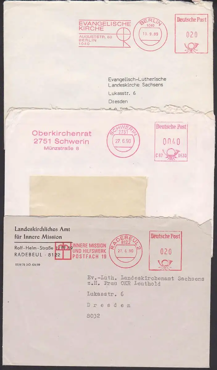 Evangelische Kirche, Innere Mission, Oberkirchenrat Schwerin, drei Bfe mit AFS