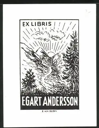 Exlibris Egart Andersson, Gebirgsmassiv mit Sonnenaufgang