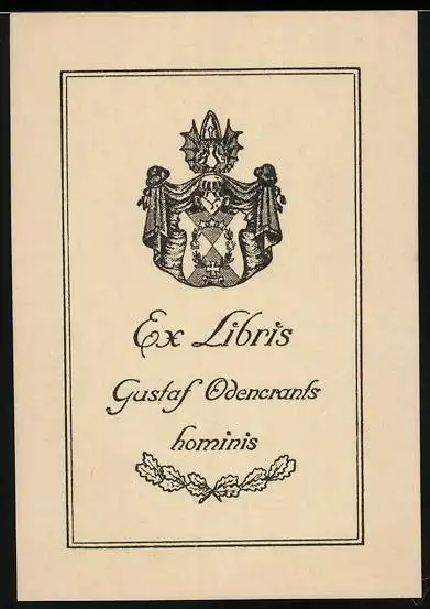 Exlibris Gustaf Odencrants, Wappen mit Ritterhelm