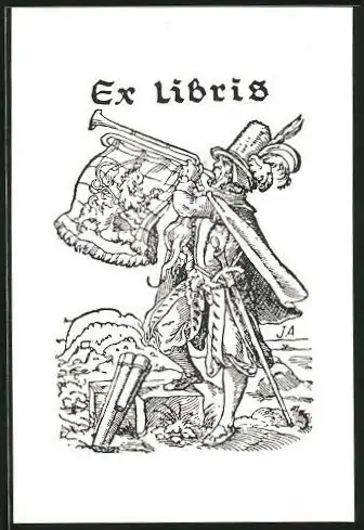 Exlibris Marktschreier bläst in seine Trompete