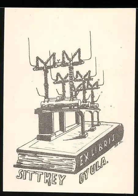 Exlibris Sittkey Gyula, Gestell auf einem Buch