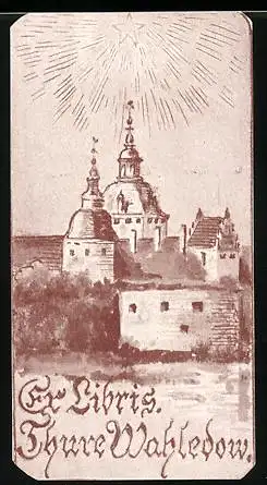Exlibris Thure Wahledow, Blick auf eine Kathedrale, rot