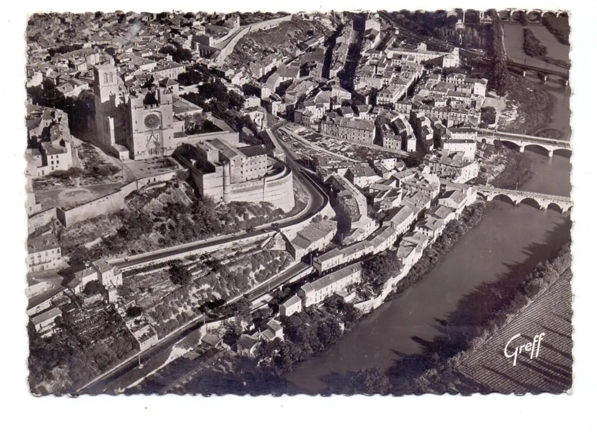 F 34500 BEZIERS, CPSM, Vue airienne, 1952