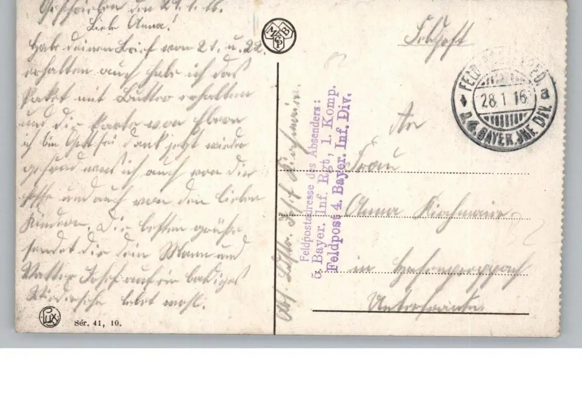 F 59480 LA BASSEE, Rue de la Porte d'Estaires, 1916, deutsche Fedlpost, 5. Bayer. Inf. Regt.