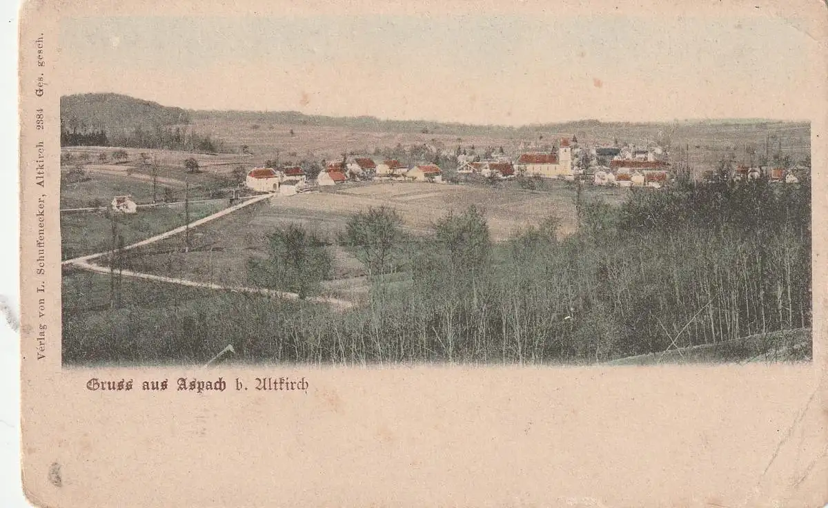 F 68130 ASPACH / Altkirch, Panorama, color, ca. 1900, kl. Eckknick