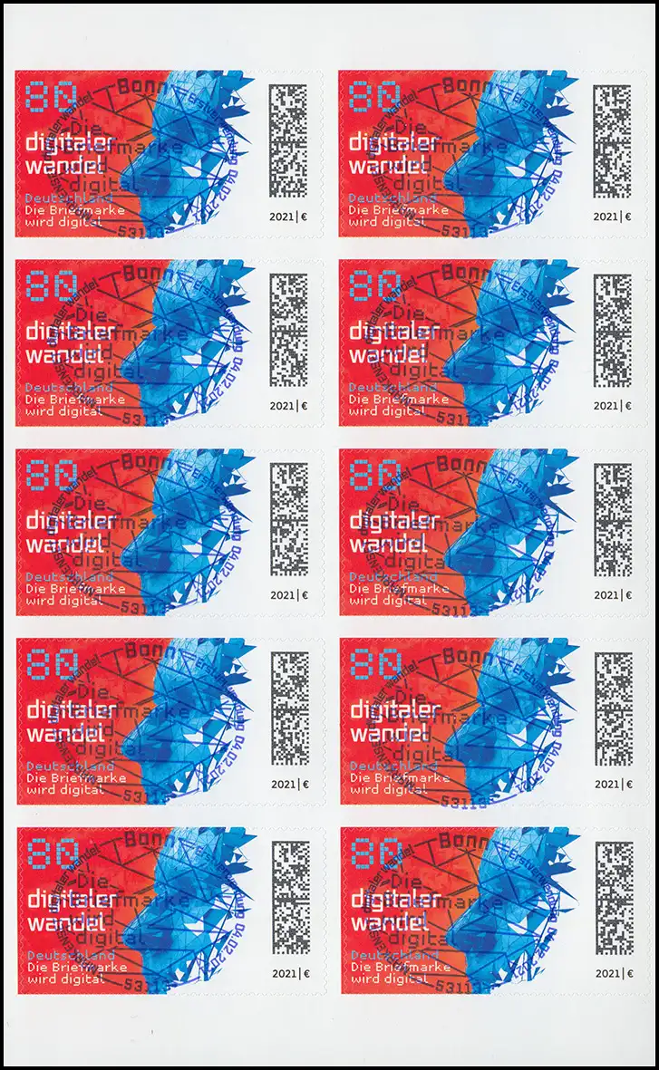 FB 104B Digitaler Wandel, Folienblatt mit 10 x 3592 ENG gestanzt, ET-O Bonn